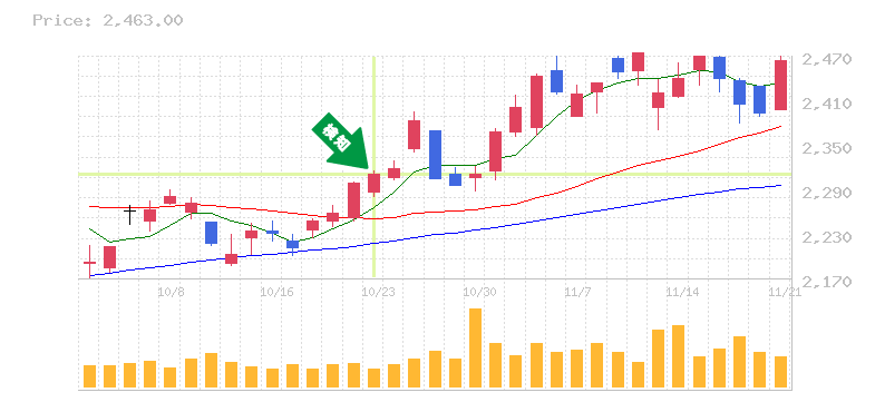 上離れ? 4連騰以上継続しながら75日線突破している銘柄
