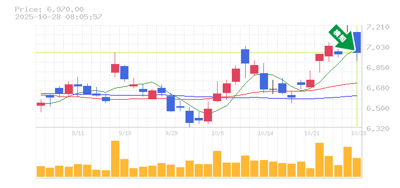 終 値:6970円