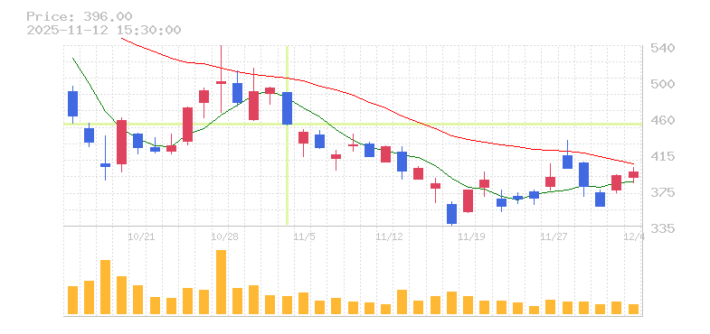 | 株価:450円(-8.35%)前日比:-41 | ||||