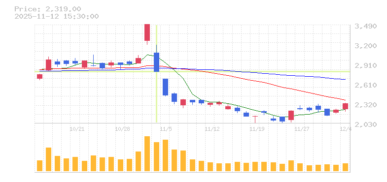 | 株価:2,791円(-20.05%)前日比:-700 | ||||