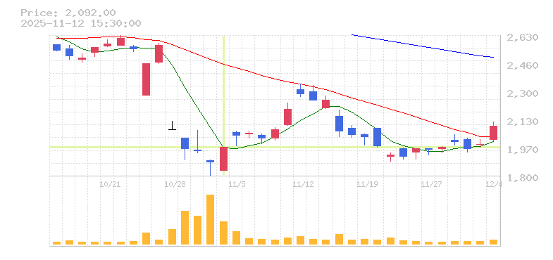 | 株価:2,095円(2%)前日比:+41 | ||||