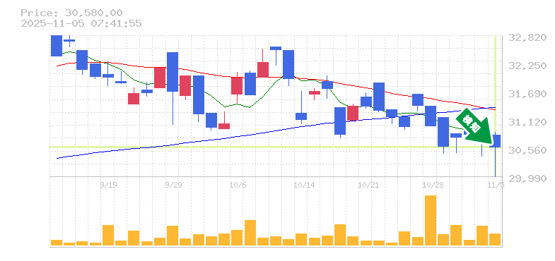 終 値:30580円