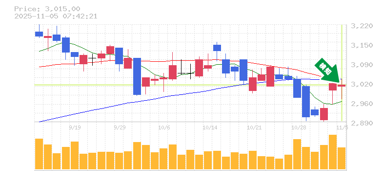 終 値:3015円