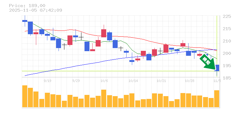 終 値:189円