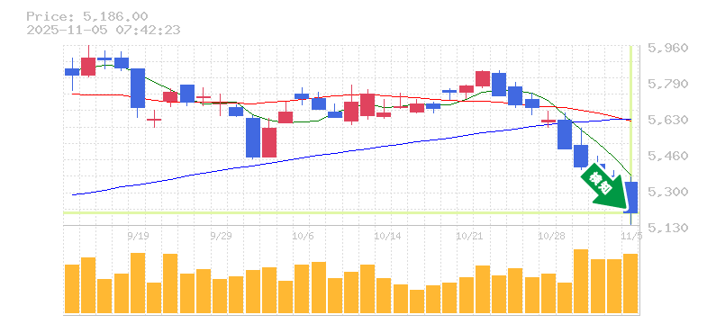 終 値:5186円