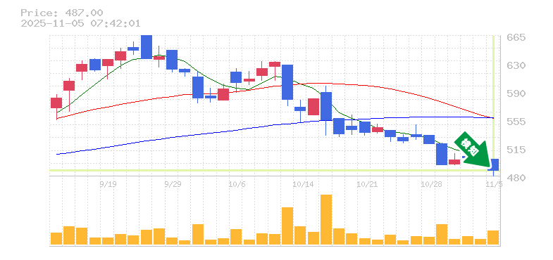 終 値:487円