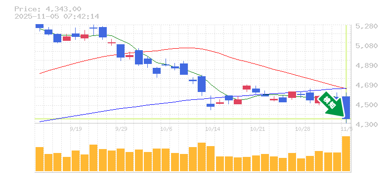 終 値:4343円