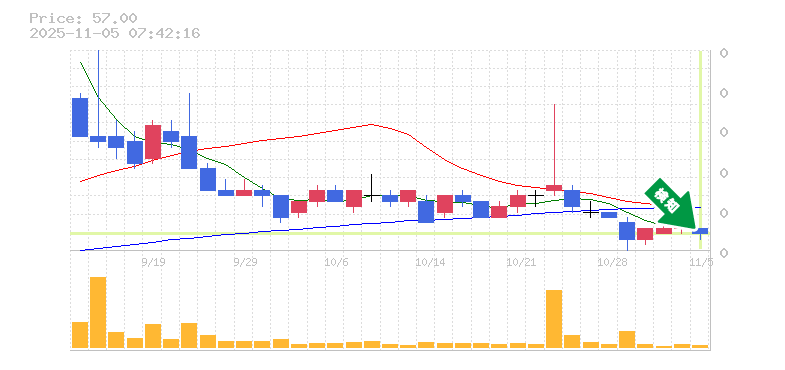 終 値:57円