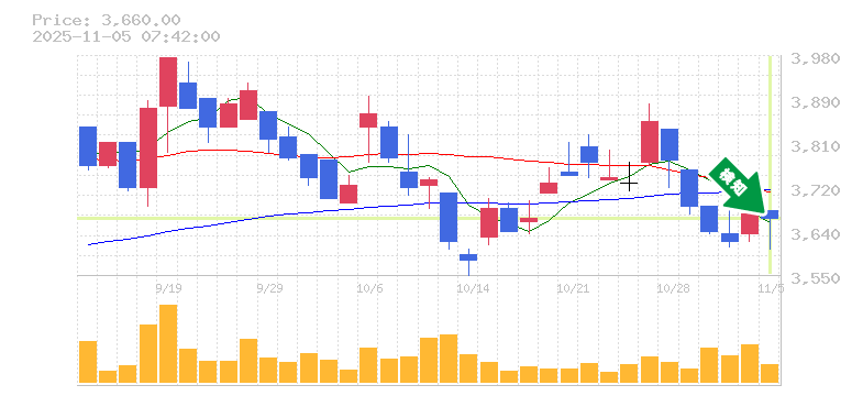 終 値:3660円