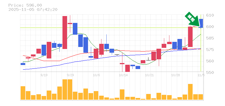 終 値:596円