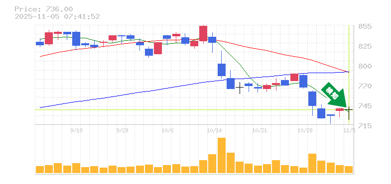 終 値:736円