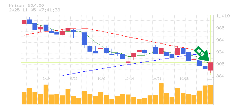 終 値:907円