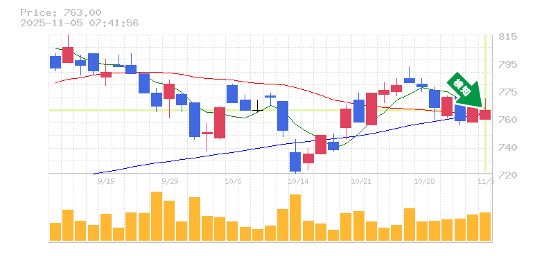 終 値:763円