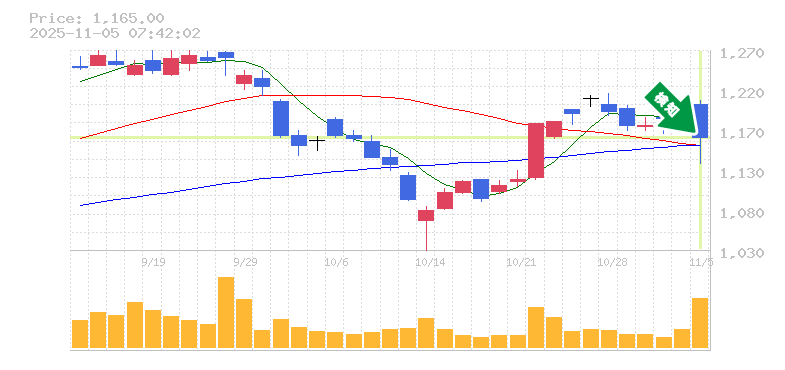 終 値:1165円
