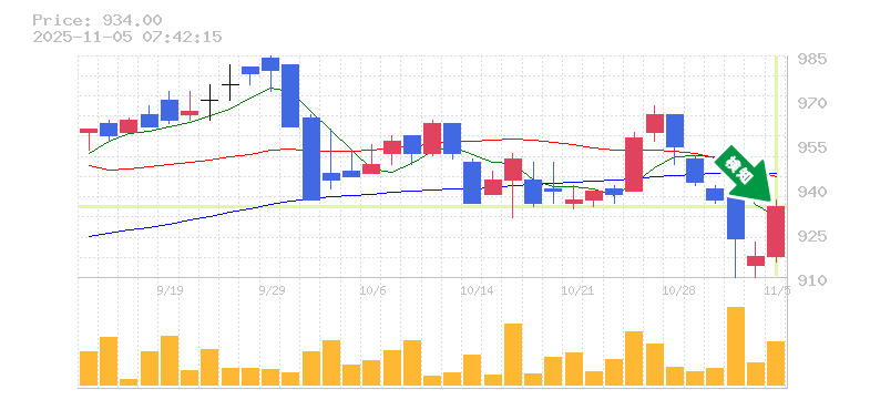 終 値:934円