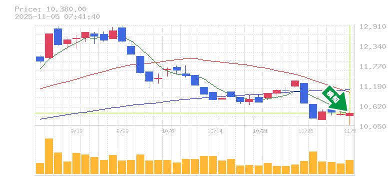 終 値:10380円