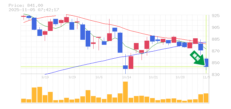 終 値:841円