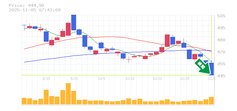 終 値:444.9円