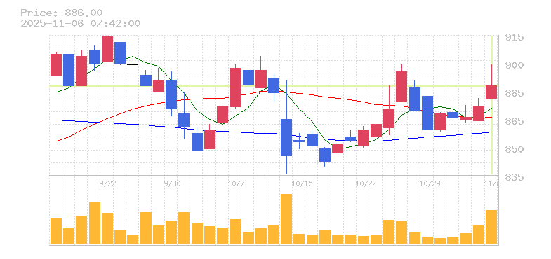 終値:886円