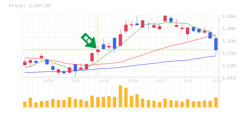 終 値:3249円