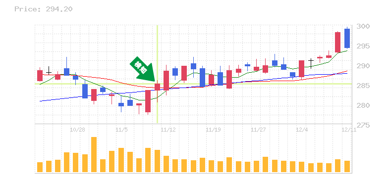 終 値:284円