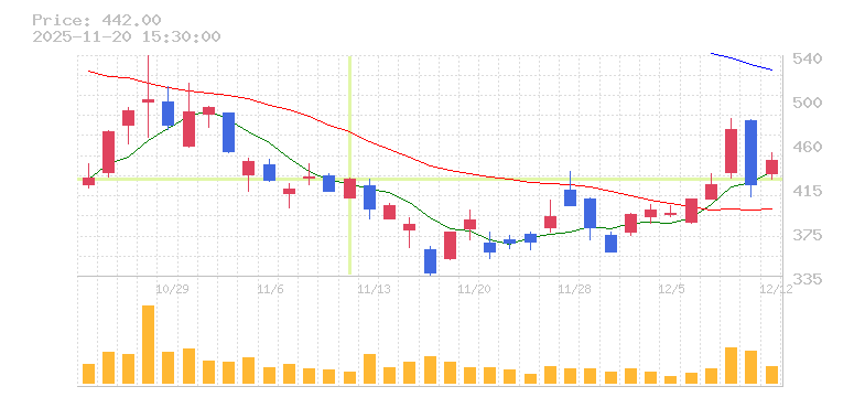 | 株価:425円(2.91%)前日比:+12 | ||||