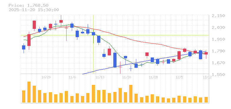 | 1,687円 | 1,753円 | 1,666円 | 1,707円 | 6,281,700 |