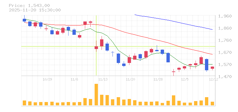 | 株価:1,707円(-10.49%)前日比:-200 | ||||