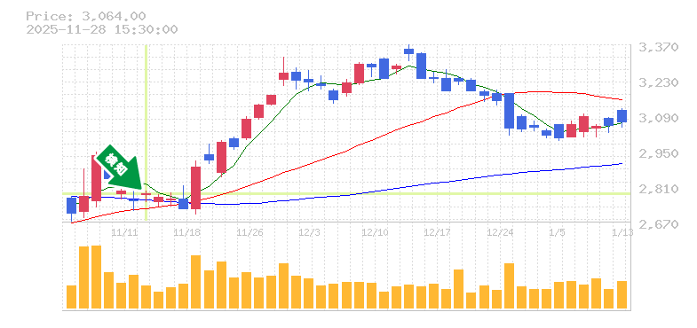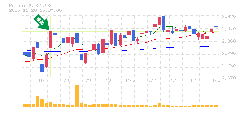 最近の株価動向は非常にポジティブで、特に直近の高値を更新し、終値も安定して高めで推移しています。移動平均線のトレンドを見ても、短期的な価格が上昇トレンドにあり、特にMA5が重要なサポートラインとして機能している印象です。これにより、今後の上昇余地が期待できる状況です。過去のデータを参考にすると、損切りラインとしては、2800円付近を設定するのが妥当かもしれません。リスク管理の観点から、出来高の動きも注視しつつ、短期的なボラティリティに対する備えが必要です。この銘柄は将来性が感じられるので、引き続き注目していきたいですね。