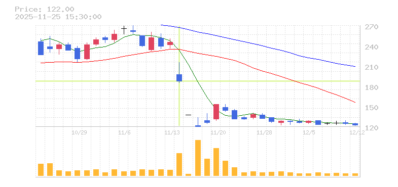| 株価:187円(-23.67%)前日比:-58 | ||||