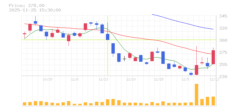 | 株価:298円(-4.18%)前日比:-13 | ||||