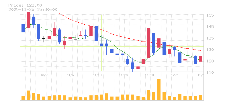 | 株価:130円(-2.99%)前日比:-4 | ||||
