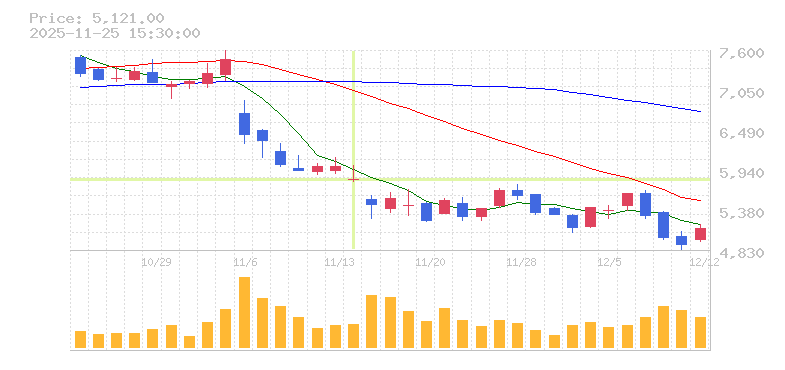 | 株価:5,813円(-2.94%)前日比:-176 | ||||