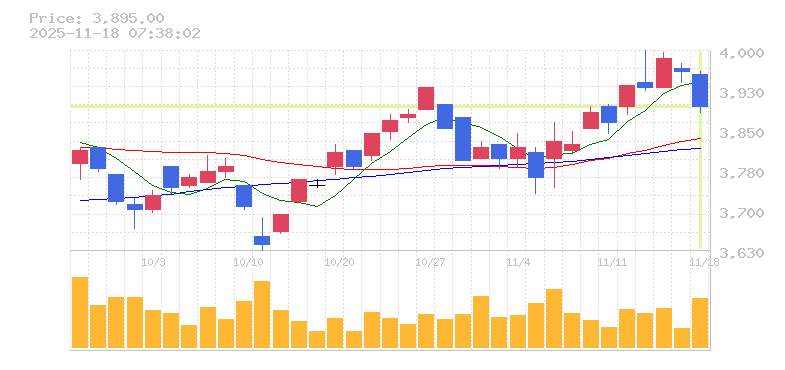 終値:3895円