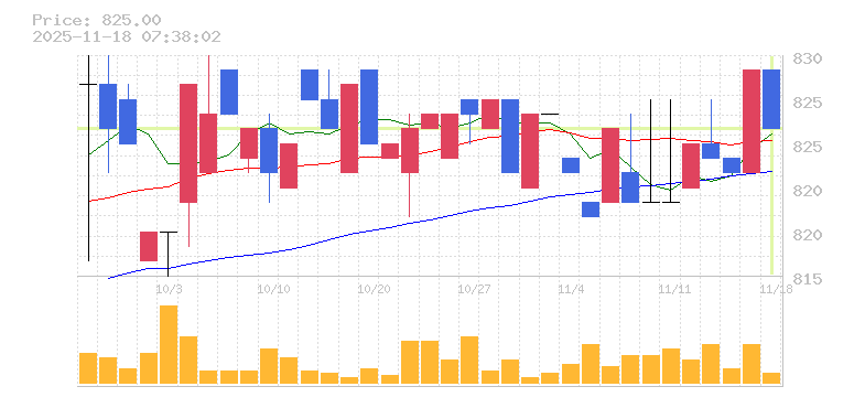 終値:825円