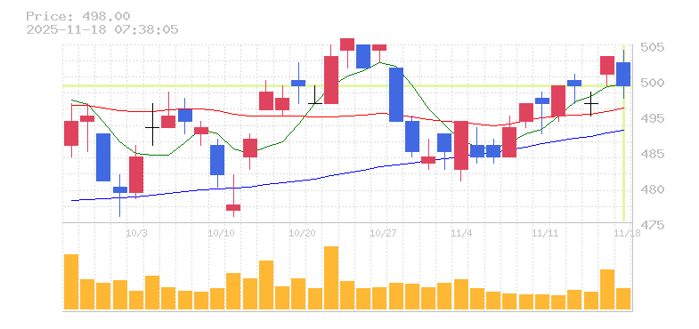 終値:498円