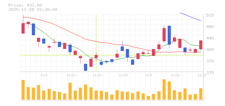 | 株価:470円(20.51%)前日比:+80 | ||||