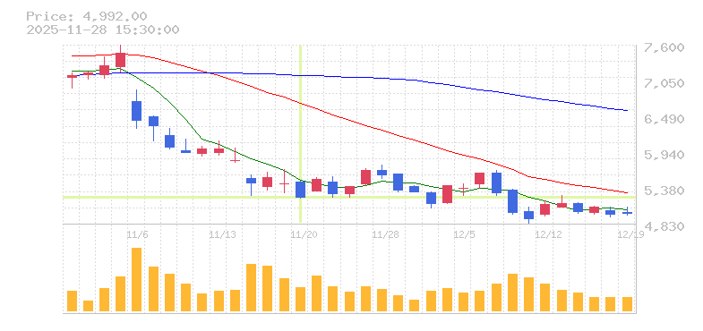 | 株価:5,350円(-7.93%)前日比:-461 | ||||