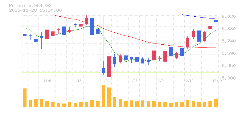 | 5,409円 | 5,493円 | 5,332円 | 5,350円 | 18,655,800 |