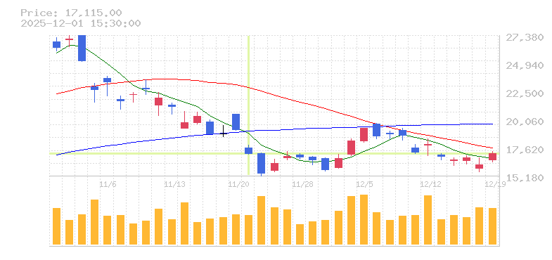 | 株価:17,090円(-10.9%)前日比:-2090 | ||||