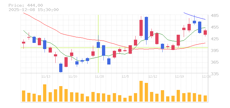 株価:394円(-5.06%)前日比:-21