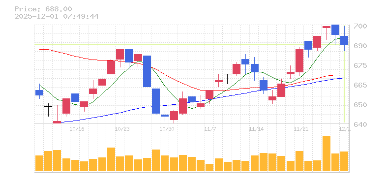 終値:688円