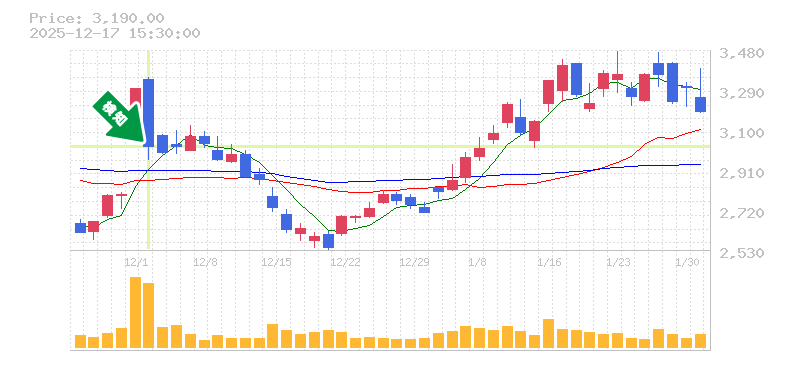現在の株価動向はポジティブなトレンドを示しています。特に、直近の終値は高値を更新しており、移動平均線も上昇傾向にあることから、上昇トレンドが継続していると見受けられます。過去数日間での値動きには、安定した取引量も見られ、これは市場参加者の関心の高さを示しています。
