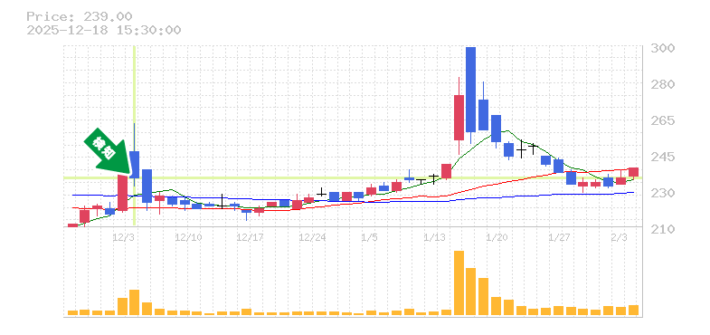 リスク管理の観点からは、損切り価格を設定する際、過去の安値から考えると、230円前後が一つの目安になります。この価格を下回ると、トレンドの変化を示す可能性があるため、慎重な判断が求められます。