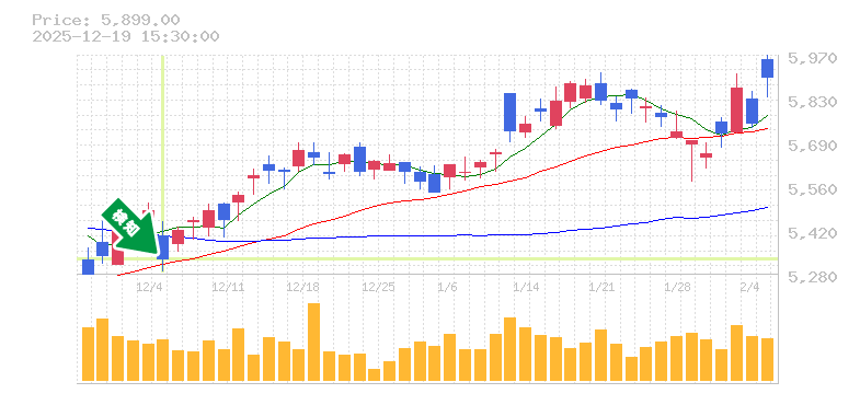 リスク管理の観点からは、過去の安値を参考に、損切り価格をおおよそ5200円前後に設定するのが妥当でしょう。この水準を下回るとトレンドが変わる可能性があるため、注意が必要です。