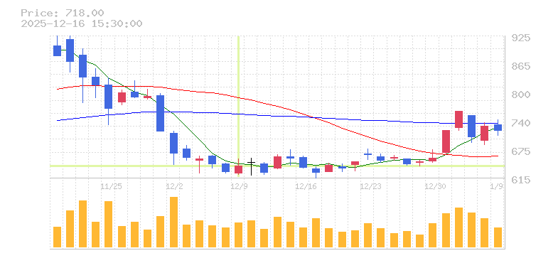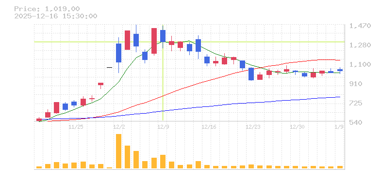 株価:1,301円(-8.96%)前日比:-128