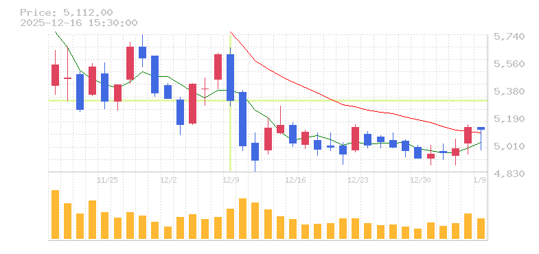 株価:5,303円(-5.42%)前日比:-304