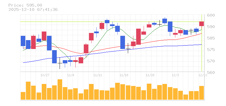 終値:595円