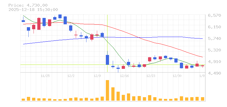 | 株価:4,905円(-1.9%)前日比:-95 | ||||