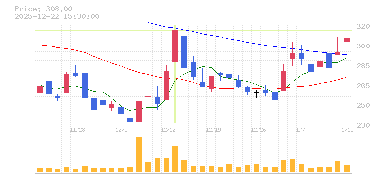 | 株価:315円(13.31%)前日比:+37 | ||||